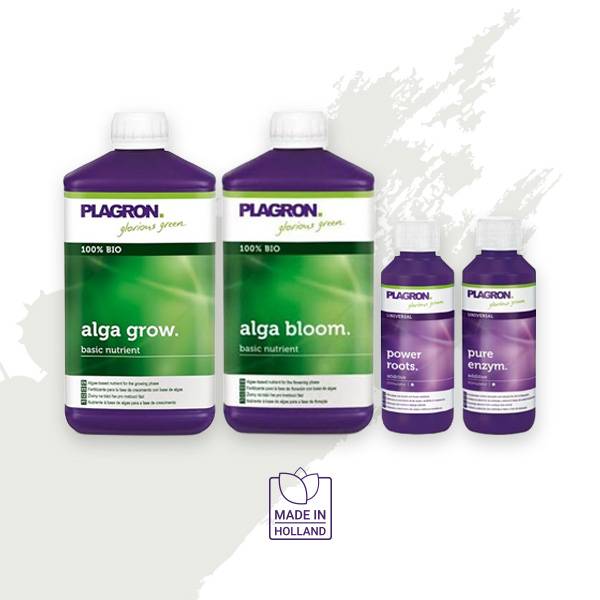 Il Kit Fertilizzanti Plagron ALGA è un set completo composto da Alga Grow, Alga Bloom, Pure Zym e Power Roots. È progettato per accompagnare l’intero ciclo di vita delle piante in coltivazione in vaso e all'aperto, dalla fase vegetativa alla fioritura, includendo stimolazione radicale ed enzimi per la salute del substrato. Indicato per coltivatori principianti ed esperti che utilizzano terriccio come mezzo di coltivazione. Contiene tutto il necessario per il sapore, il gusto e la qualità del raccolto.