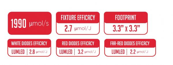 • Efficienza Massima: La lampada vanta un'efficienza luminosa (Photon Efficacy) di 2,7 micromol/J e un impressionante output di flusso fotonico (PPF) di 816 micromol/s.
